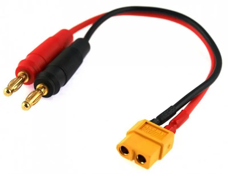 Kabel do zasilania ładowarek SkyRC, iDST i innych z wejściem zasilania wtyczką XT60. Umożliwia on podłączenie dowolnego zasilacza z wyjściem na banan 4mm do tych ładowarek.
