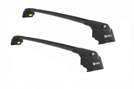 Wszystko, czego potrzebujesz do zbudowania dachowego bagażnika bazowego – zestaw stóp Turtle AIR 2 na reling zintegrowany + belki PRO1 102 oraz 96 cm w kolorze czarnym