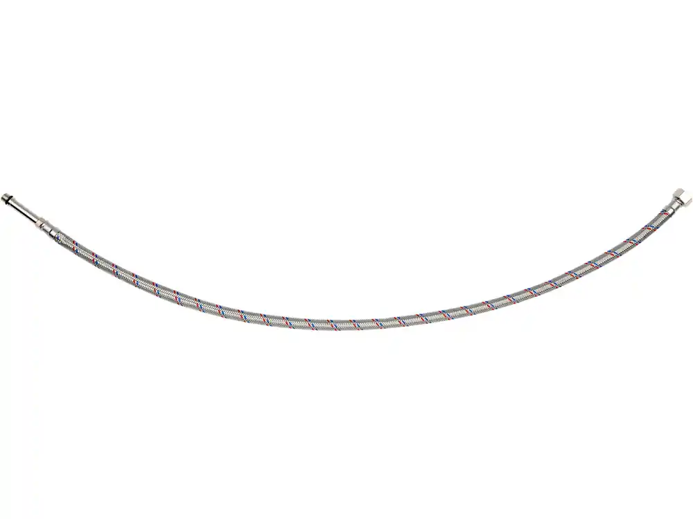 - Elastyczny wąż w oplocie ze stali nierdzewnej, gwarantujący wytrzymałość i odporność na uszkodzenia