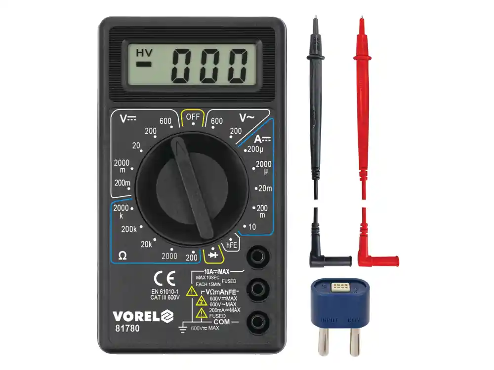 Miernik uniwersalny 81780 z ręcznym zakresem dla każdego pomiaru umożliwia wykonanie podstawowych pomiarów elektrycznych.