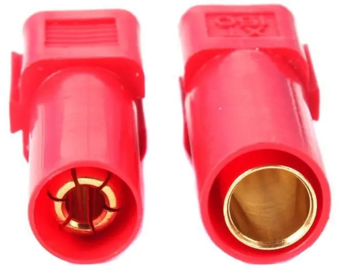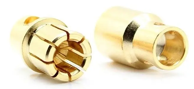 Komplet pozłacanych konektorów typu krótki „banan” (wtyk + gniazdo) 8 mm.