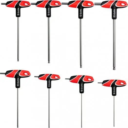 Profesjonalny zestaw kluczy trzpieniowych HEX (KULISTE) z rękojeścią. Zestaw zawiera 8 elementów. Rozmiary 2,5mm, 3mm, 4mm, 5mm, 6mm, 7mm, 8mm 10mm. Trzpienie wykonane są ze stali S2. Niezastąpiony zestaw w warsztacie samochodowym i mechanicznym.