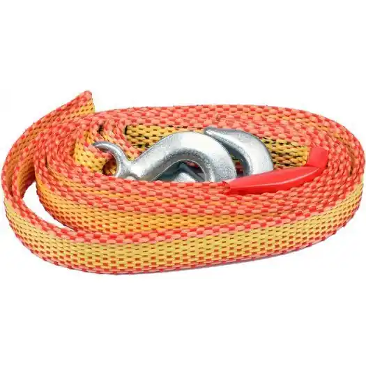 Taśma holownicza z hakiem. Wykonana z polipropylenu, przeznaczona do holowania pojazdów o dopuszczalnej masie całkowitej do 1450 kg. Zakończona po obu stronach solidnymi hakami z zabezpieczeniem przed wypięciem.