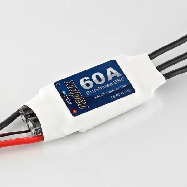Uniwersalny regulator Redox EVO 40A do silników bezszczotkowych przeznaczony do użytku w modelach samolotów i helikopterów.