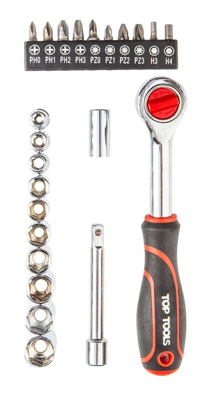 Zestaw kluczy nasadowych 1/4″, 23 szt. – TOP TOOLS