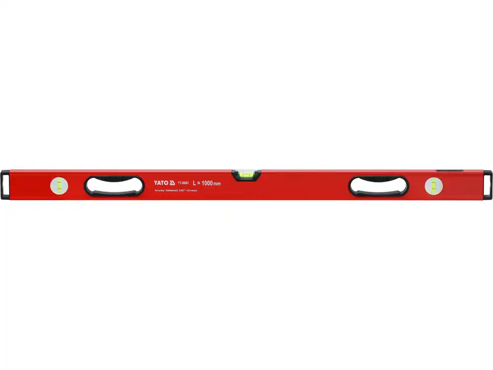 Trzy libelle z czytelnymi fiolkami umożliwiają szybką ocenę poziomu, pionu i kąta bez konieczności zmiany narzędzia. Zintegrowany uchwyt boczny oraz odporne ochraniacze końcowe zwiększają komfort pracy i zabezpieczają narzędzie przed uszkodzeniami podczas użytkowania.