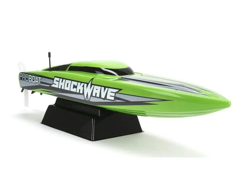 Shockwave 26 BL Deep-V RTR jest napędzany trójfazowym, chłodzonym wodą silnikiem 2000 obr/min/V z niewiarygodnie wysoką mocą. Duża prędkość wyniesie tą maszynę na powierzchnię, doskonale przyśpiesza z zakrętu i ma wysoką stabilność. Tak jak wszystkie dalsze modele ProBoat, również i Shockwave 26 BL jest przygotowany do jazdy. Jest wyposażony w regulator trójfazowy Dynamite Marine 30A z chłodzeniem wodnym kompatybilnym z 2-3 ogn. LiPol. Zainstalowana 2 kanałowa pistoletowa aparatura RC Proboat 2,4GHz, trwały i lekki kadłub z ABS wraz wysokiej jakości napędem oferuje maksimum tego najlepszego dla nieskończonej zabawy. Wystarczy uzupełnić akumulator napędowy LiPol 2-3 ogn. i możecie rozpocząć wyścig.