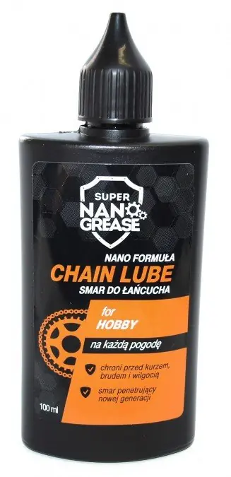 Produkt przeznaczony do smarowania łańcuchów, gwintowanych złączek, przewodów hamulcowych, zamków itp. które narażone są na częstą pracę w trudnych, wilgotnych warunkach. Smar tworzy niewidzialną warstwę nanopowłoki która wypiera wodę w 100% i zapewnia maksymalny stopień ochrony przed zurzyciem, zacieraniem się i zespojeniem. Smar dokładnie dociera w każdą mikroszczelinę usuwając skrzypienie i zapobiegając przed korozją. Ogranicza on dzięki temu zużycie mechanizmów oraz przedłuża ich żywotność. Smar ten jest idealny na jazdy długodystansowe, ponieważ długo utrzymuje się na pokrytej powierzchni, np. na łańcuchach rowerowych.